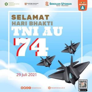 Dalam Rangka Hari Bakti TNI AU dengan Tema “Dilagat Kepahlawanan 29 Juli 1947, TNI AU Siap Mendukung Percepatan Penanganan Covid 19 Menuju Tatanan Baru Untuk Indonesia Maju” Seluruh Civitas Akademika Sekolah Utsman mengucapkan Hari Bakti TNI AU yang ke 74 Semoga TNI AU lebih terdepan dalam menjaga kestabilan NKRI.