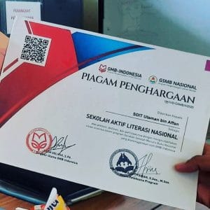 Sekolah Utsman bin Affan pada jenjang Sekolah Dasar memperoleh piala penghargaan dari GMB Indonesia sebagai Sekolah Aktif Literasi Nasional. Ada 3 karya yang sudah dibukukan, yaitu yang berjudul “Kuncup Semangat dikala Fajar”, “Karya Bermakna Kala Pandemi Melanda”, dan “Jendela Masa Depan Harapan”. Sekolah Utsman juga mengadakan pekan literasi untuk anak-anak setiap satu tahun 2 kali, dengan target masing-masing jenjang berbeda. Progam tersebut berupa membaca buku dengan minimal beberapa halaman. Hal tersebut dilakukan untuk membiasakan anak-anak agar gemar membaca. Karena membaca merupakan jendela segala ilmu pengetahuan.