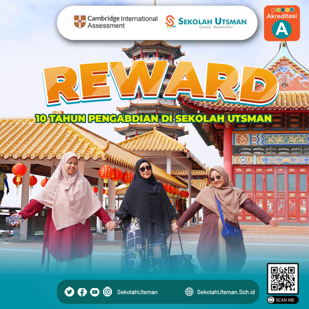 Sebagai bentuk apresiasi atas dedikasi dan loyalitas para tenaga pendidik dan staf, Sekolah Utsman memberikan penghargaan khusus bagi mereka yang telah mengabdi selama 10 tahun. Penghargaan ini diwujudkan dalam bentuk reward trip ke Singapura dan Malaysia, sebuah pengalaman yang tak hanya menyenangkan tetapi juga menjadi momen berharga bagi para penerima penghargaan.